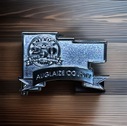 The Ohio Counties Lapel Pin is a beautifully crafted round pin featuring all 88 county boundaries in Ohio, intricately etched for detail. Made with soft enamel, it is finished with a bold “Ohio Counties” banner at the bottom, offering a stylish way to show state pride and support for Ohio’s counties!